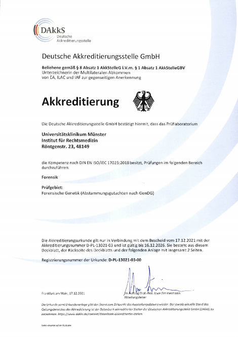 Das Institut für Rechtsmedizin am Universitätsklinikum Münster umfasst drei große Bereiche: die Forensische Medizin mit Leichenschauen, Obduktionen, Tatortbesichtigungen, Todeszeitbestimmungen, feingeweblichen Untersuchungen usw., des Weiteren die Forensische Molekularbiologie, die Abstammungsuntersuchungen und insbesondere Vaterschaftstests vornimmt, sowie die Forensische Toxikologie, die Drogen- und Alkoholabstinenz-Nachweise im Rahmen von medizinisch-psychologischen Untersuchungen durchführt.