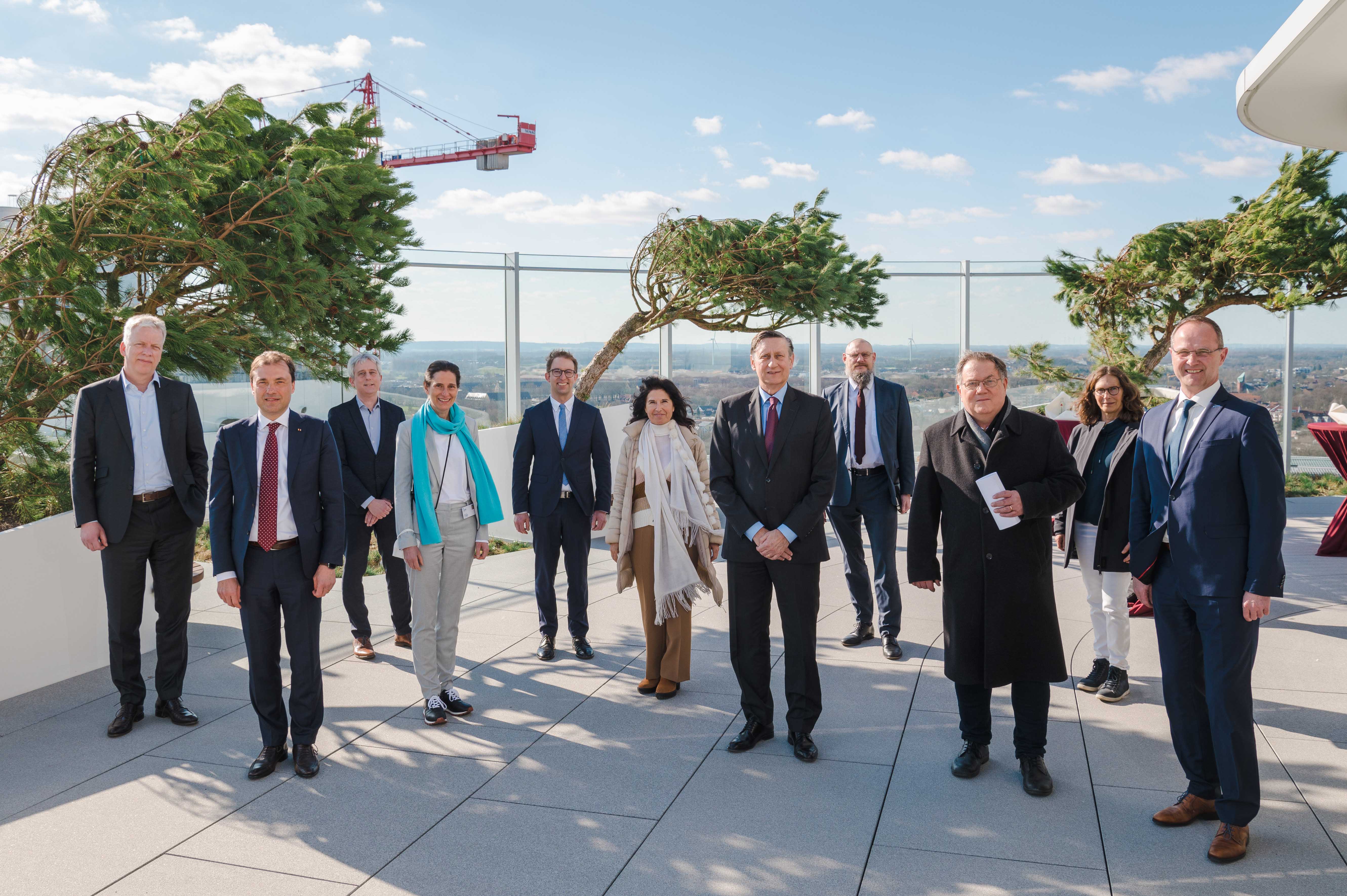 Als in den Hochzeiten der Pandemie angesichts der hohen Fallzahlen die Krankenhäuser in den Niederlanden und Belgien zu überlasten drohten, hatte das Land Nordrhein-Westfalen im Sinne guter Nachbarschaft eine Übernahme von Intensivpatienten angeboten. Unterstützt wurde die Verteilung der europäischen COVID-19-Patienten auf die NRW-Krankenhäuser durch ein Webportal, das das Internationale Patientenmanagement des UKM unter Leitung von Dr. Vincent Hofbauer eigens für diese Aufgabe entwickelt hatte. Botschafter Dr. Cyrill Nunn war es ein Anliegen, bei seinem heutigen Besuch dem UKM für seinen Beitrag zur Pandemiebekämpfung noch einmal zu danken. „Bei der grenzübergreifenden Zusammenarbeit in der Pandemie hat das UKM mit der Verteilung der COVID-19-Erkrankten auf die Intensivstationen in NRW einen wertvollen Beitrag geleistet. Hier ist exzellent geglückt, was wir künftig weiter ausbauen wollen. Es gilt, den Versorgungsauftrag für alle Patientinnen und Patienten Europas wahrzunehmen, indem wir uns möglichst synergetisch vernetzen und das übereinkommend nutzen, was das jeweils andere Gesundheitssystem stark macht“, so Nunn während einer Vortragsveranstaltung auf der Etage 21 Ost des UKM.