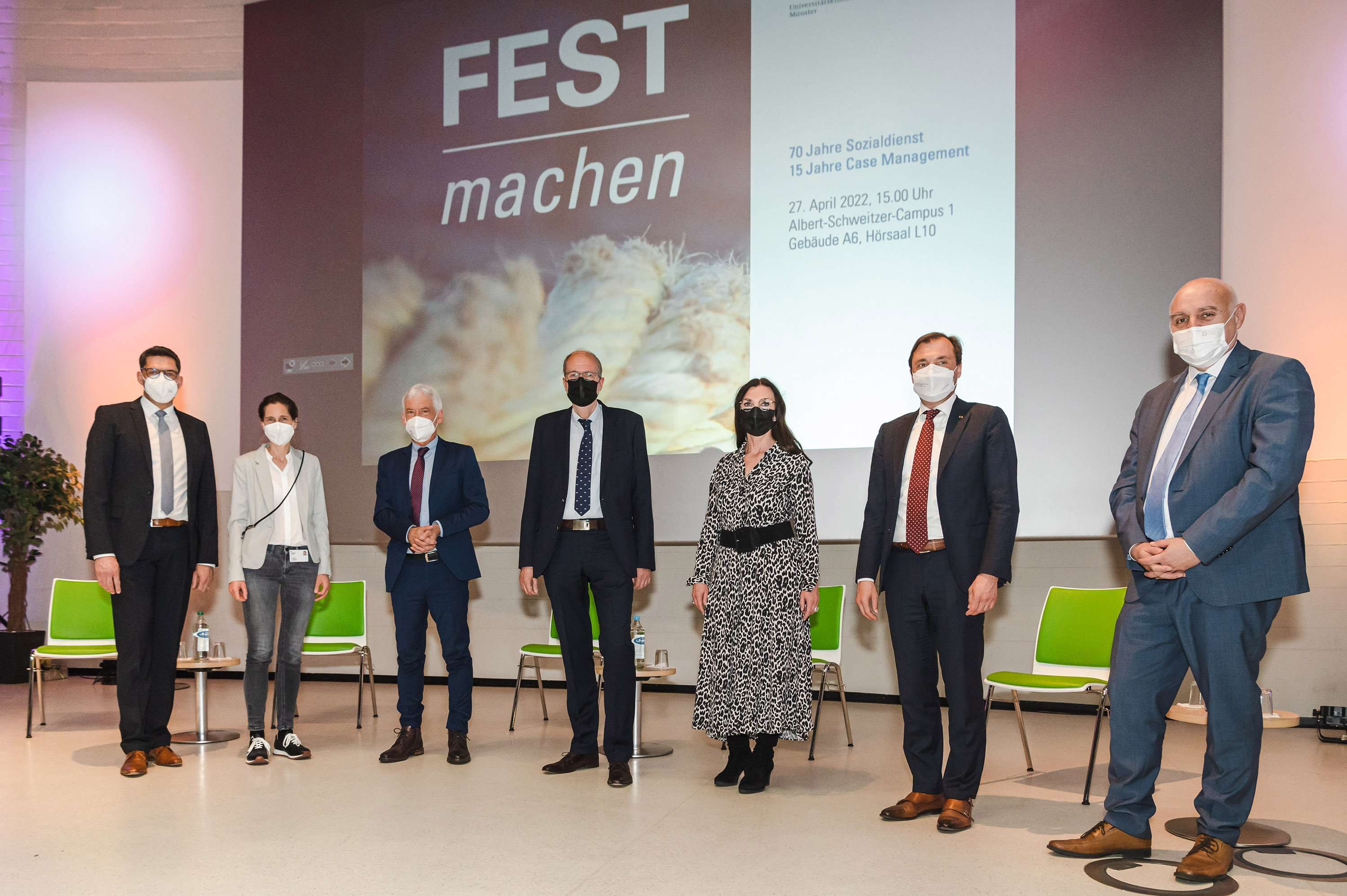 Als Fürsorgeeinrichtung mit nur einer Mitarbeiterin gestartet, zählt der Sozialdienst am UKM aktuell über 45 Mitarbeitende, die den Patientinnen und Patienten, aber auch ihren Familien in dieser Belastungssituation über den Klinikaufenthalt hinweg täglich zur Seite stehen. Bei der Feier zum 70-jährigen Bestehen des Sozialdienstes sowie zum 15-jährigen Bestehen des Case Managements am UKM bedankte sich Leiter Ulrich Kurlemann bei dem gesamten Team und den Kooperationspartnern.
