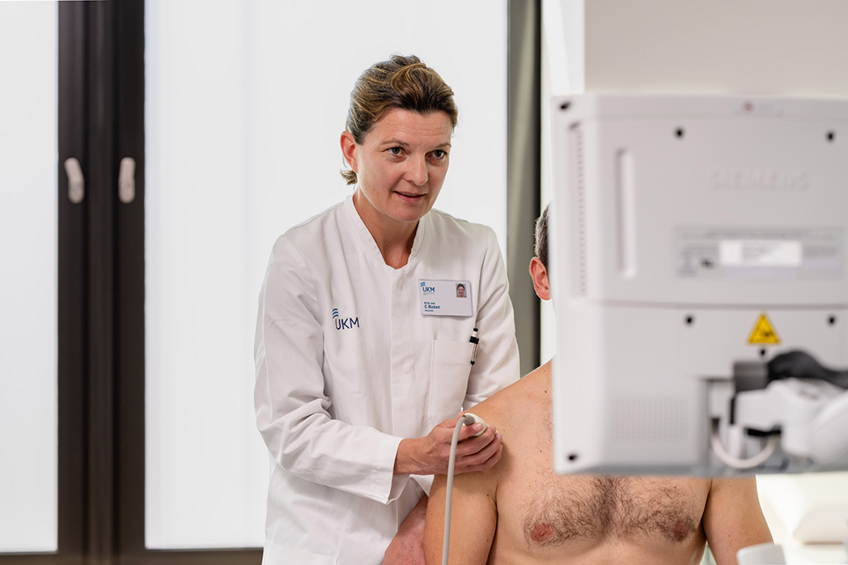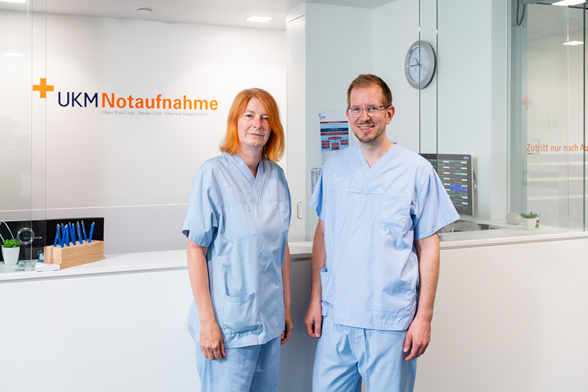 „Wir arbeiten mit unterschiedlichen Berufsgruppen zusammen und das den ganzen Tag über. Das macht die Qualität unserer Arbeit aus und deswegen fühle ich mich hier am UKM pudelwohl. Je mehr Leute zusammenarbeiten, je besser die Teamleistung ist, umso mehr können wir letzten Endes für unsere Patient*innen rausholen.“