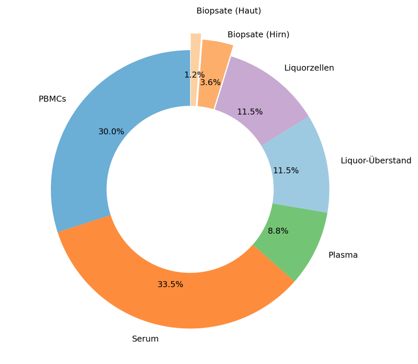 Wir sammeln ein breites Spektrum an Biomaterialien, darunter periphere mononukleäre Zellen (PBMCs), Serum, Plasma, Liquorbestandteile sowie Hirn- und Hautbiopsate.