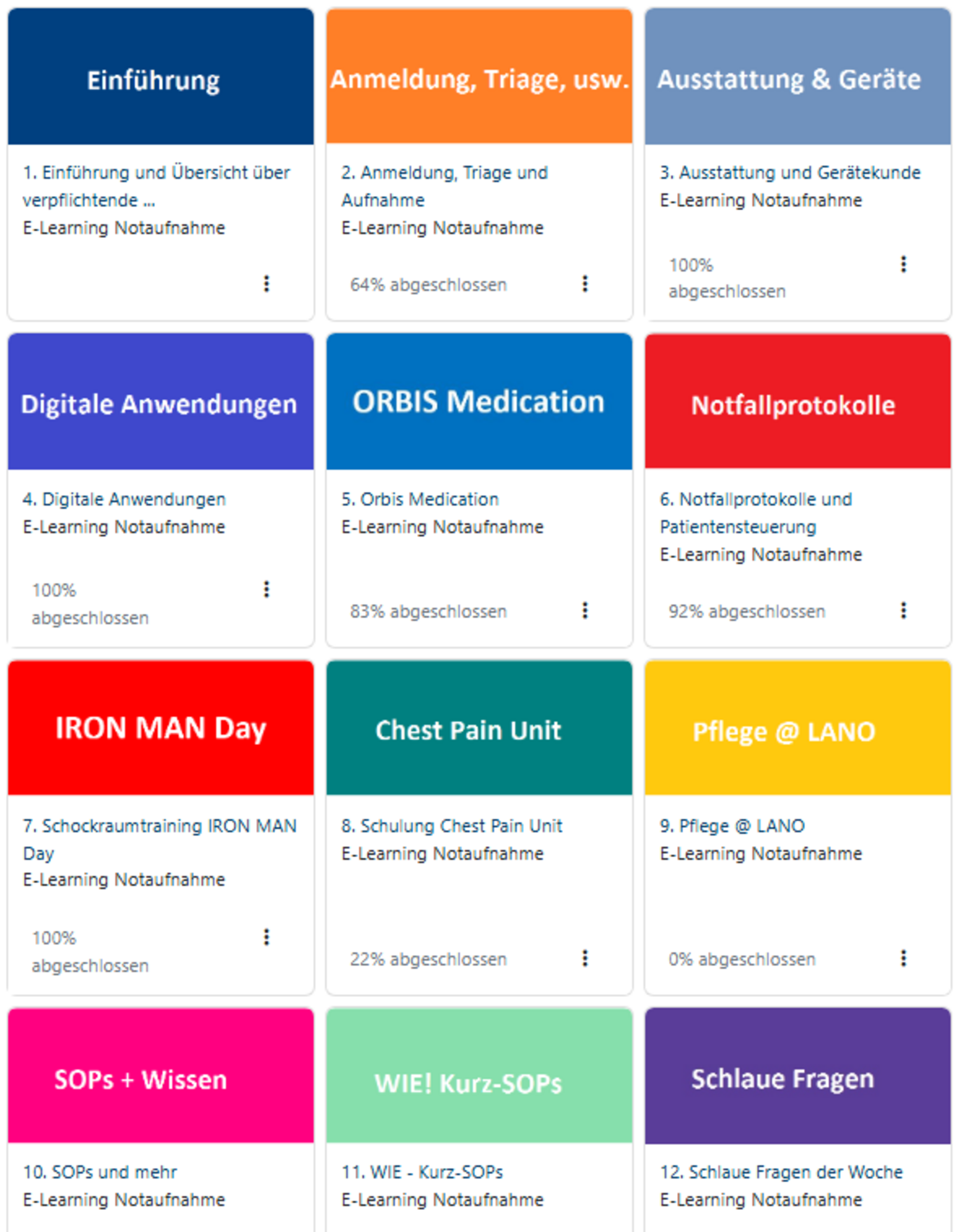 Strukturierte Einarbeitung, kontinuierliche Fortbildung und ein gemeinsames Verständnis unserer Versorgungsprozesse – all das sind Grundpfeiler einer funktionierenden Notaufnahme. Um diese Ziele nachhaltig zu unterstützen, haben wir seit 2022 eine eigene interprofessionelle E-Learning-Plattform etabliert.