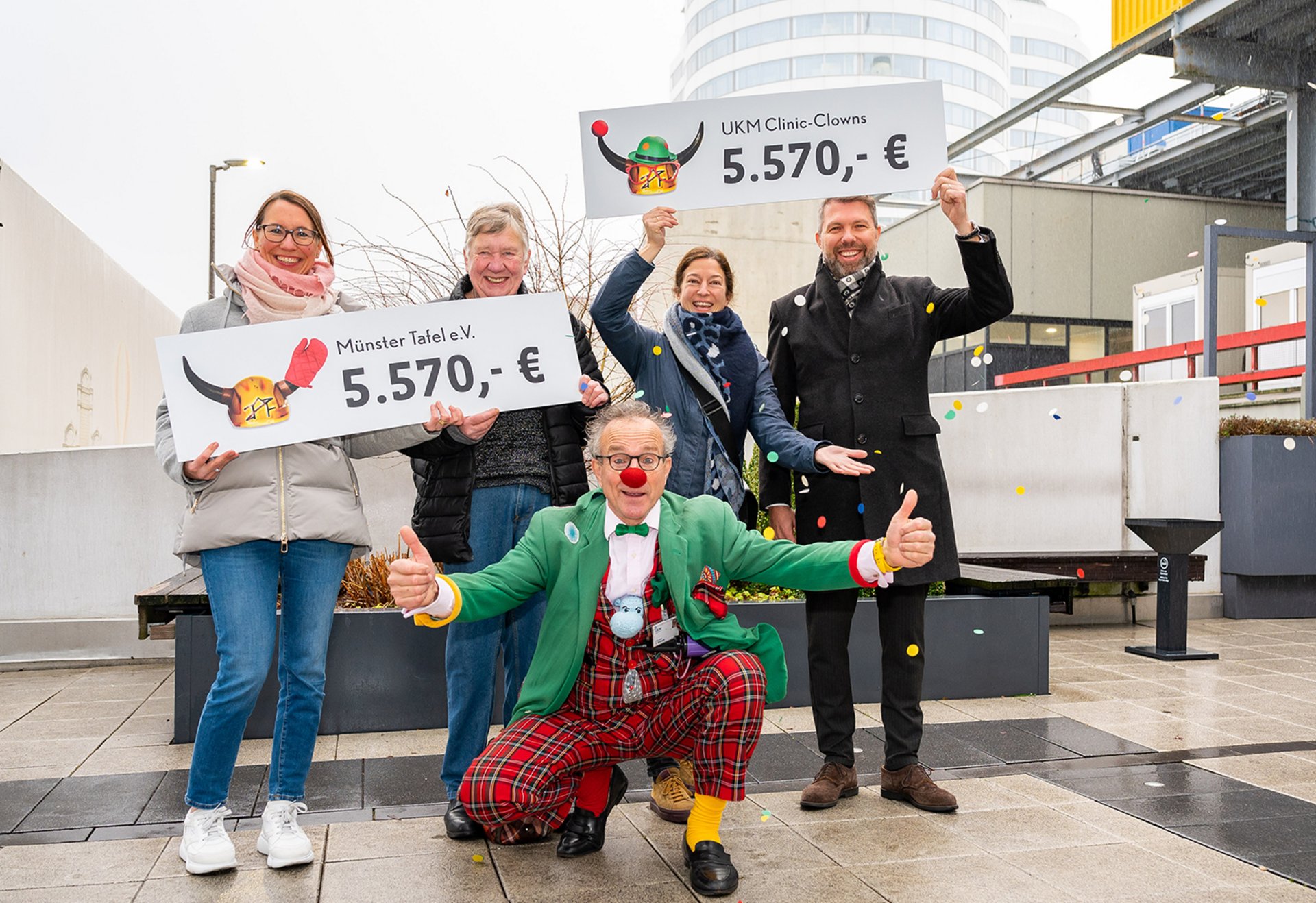 Familienunternehmen Brück engagiert sich für Münster-Tafel e.V. und UKM Clinic-Clowns mit einer Spende über jeweils 5.570,- Euro.