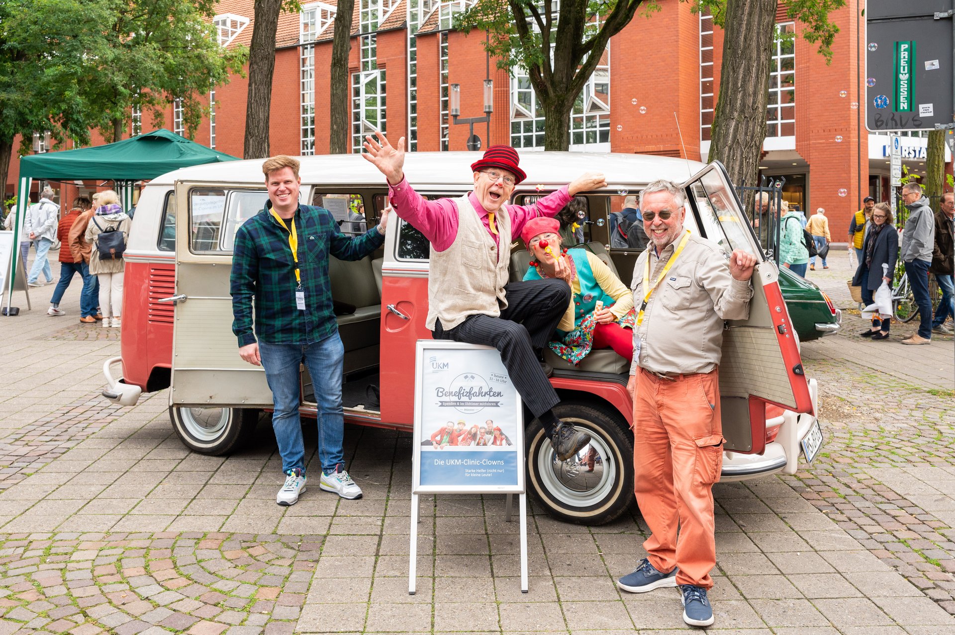 Bei Benefizfahrten zugunsten der UKM-Clinic-Clowns hatten Passanten am 23. September erneut die Möglichkeit, in vielen historischen Fahrzeugen durch Münster zu fahren. Rund 20 Fahrer und Fahrerinnen beteiligten sich bei den Benefizfahrten – unter anderem lud ein VW T1 Bulli zum Mitfahren ein.