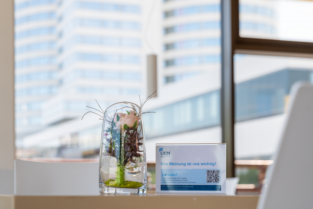 In der UKM-Cafeteria finden Mitarbeitende, Patient*innen und Besucher*innen sowie externe Gäste ein umfassendes und abwechslungsreiches Angebot an warmen und kalten Speisen und Getränken vor. Im modernen, hellen Ambiente ist Platz für über 600 Gäste. Bei schönem Wetter steht im Frühjahr und Sommer auch unsere geräumige Außenterrasse zur Verfügung.